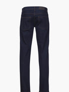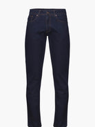 Calças de ganga para homem stone wash azul escuro, confecionadas em tecido 100% algodão. Cintura subida, fecho de botão e fecho de correr oculto por carcela, design de cinco bolsos e presilhas para cinto