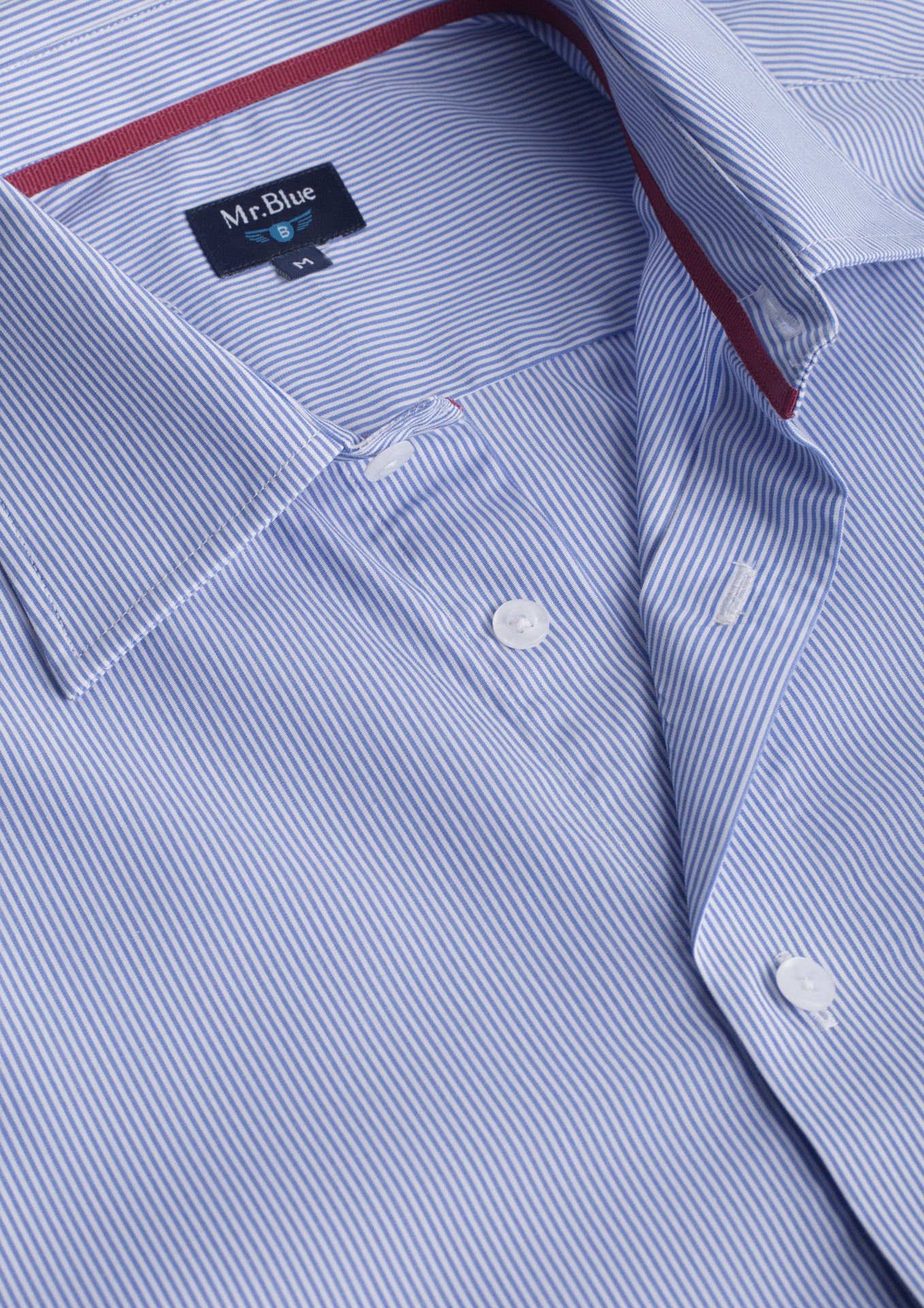 Camisa Slim Fit riscas finas Azul Claro Branco