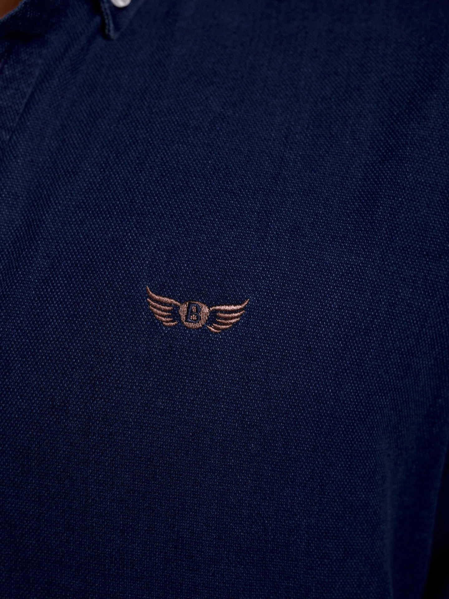 Camisa Algodão Algodão Azul Manga Comprida Regular Fit Com Logo Lisa