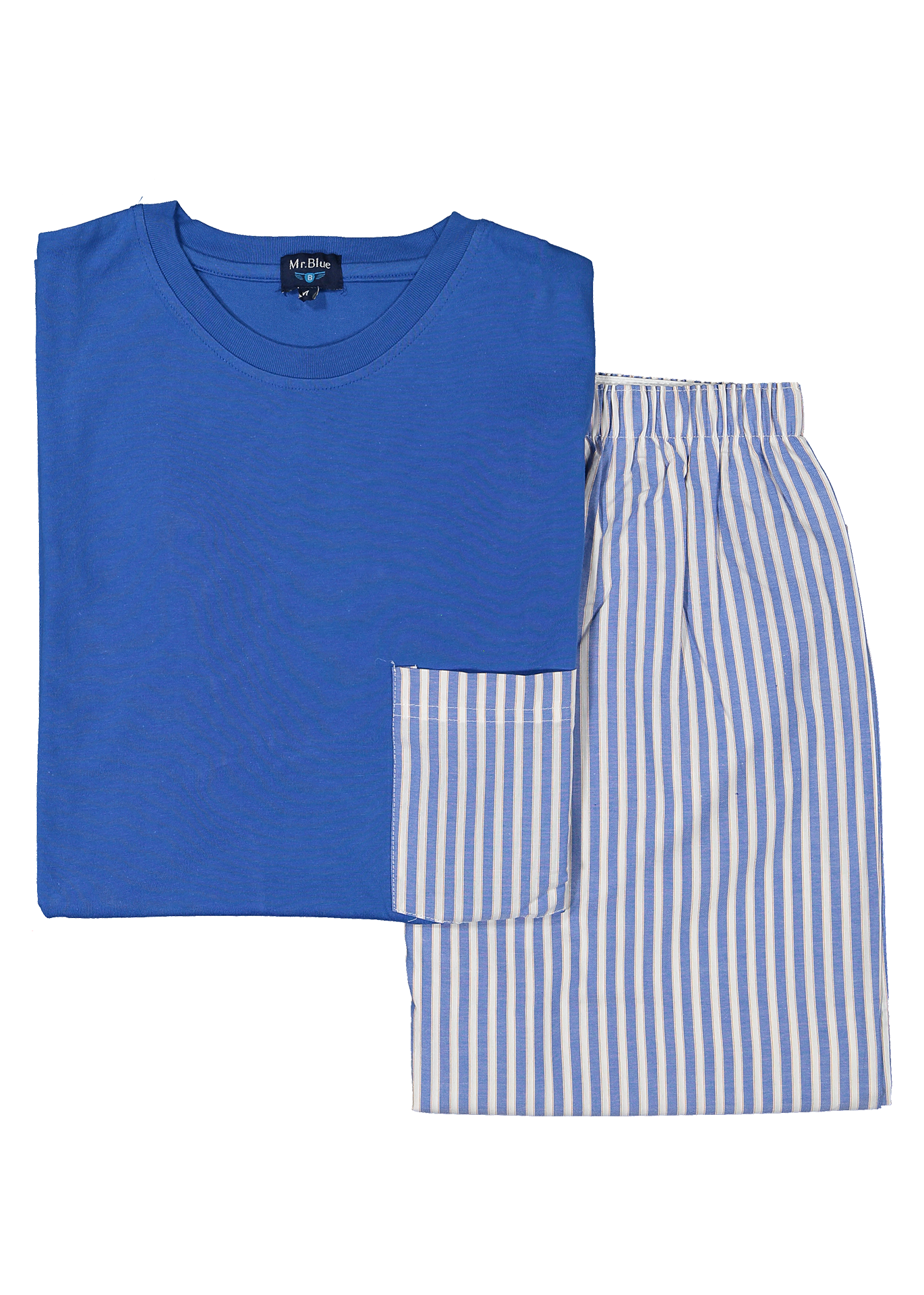 Pijamas Desportivo Calçao e T-shirt riscas grossas azul escuro e branco