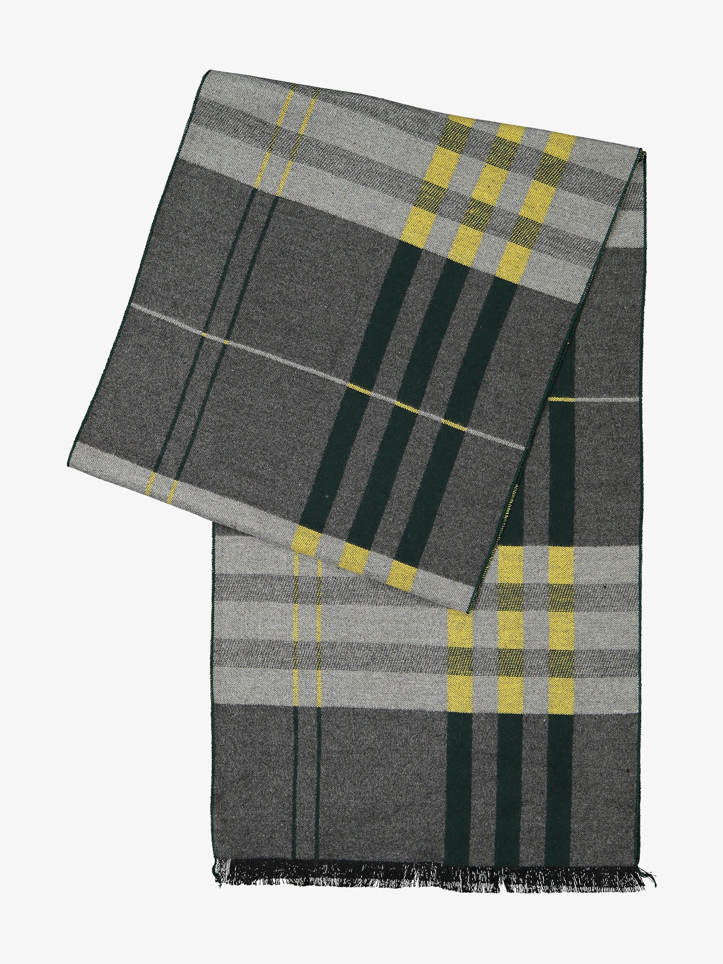 Cachecol Lã riscas grossas azul escuro e cinzento
