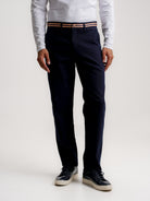 Calças Chinos Regular Fit Dobby Azuis De Algodão Lisas
