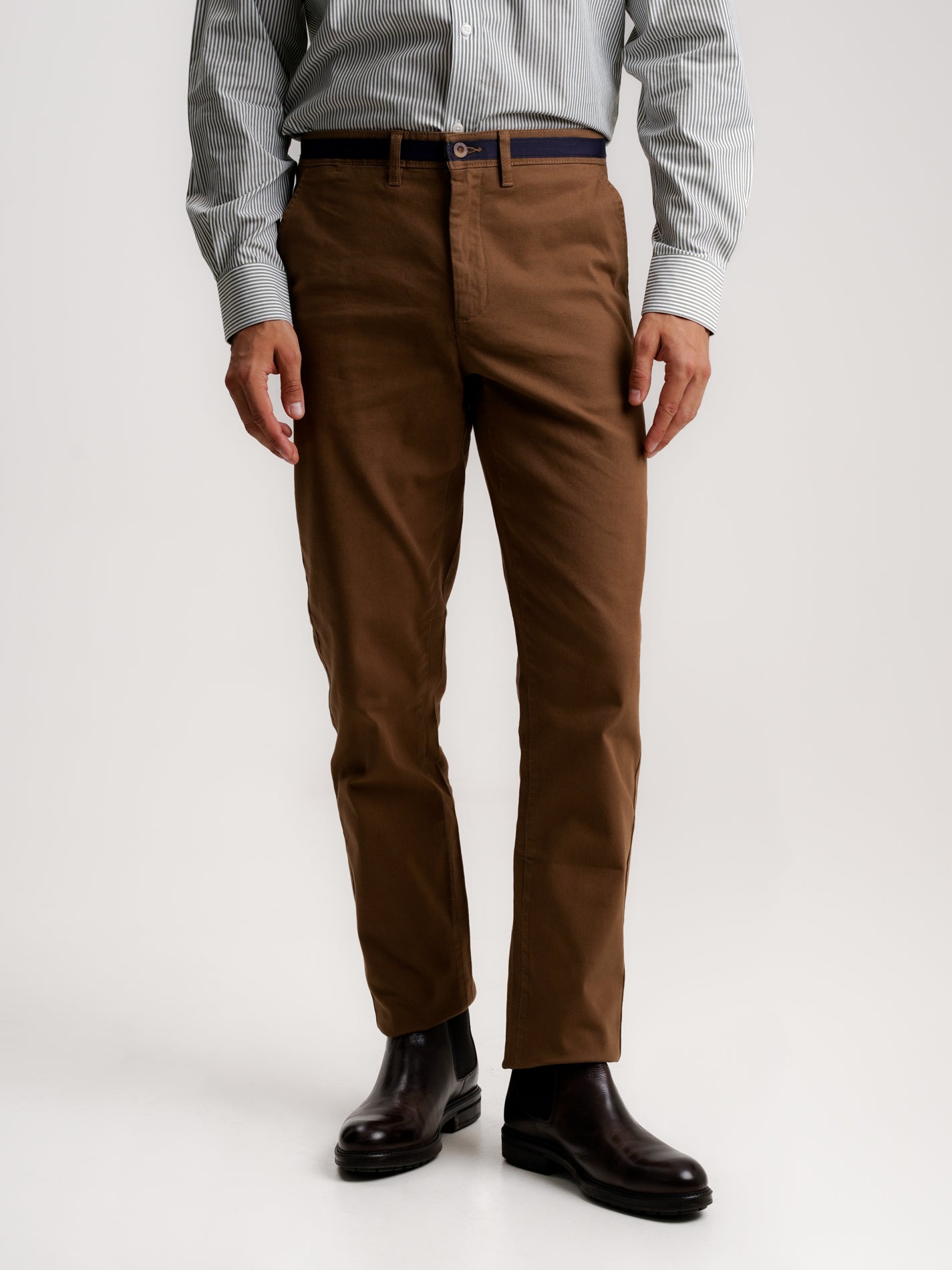 Calças Chinos Slim Fit Dobby Castanhas De Algodão Lisas