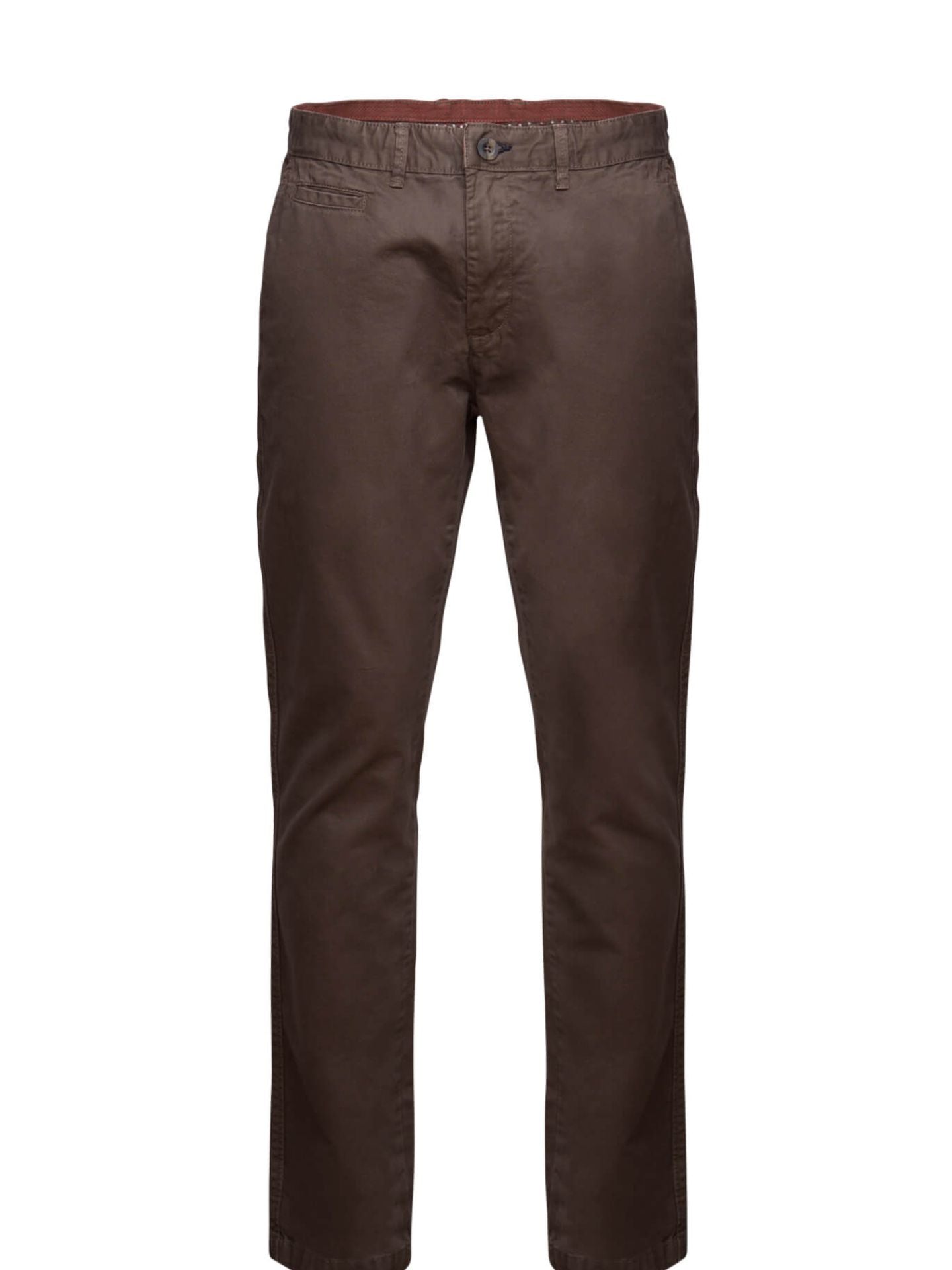 Calças Chino com estrutura lisas. Carcela com fecho de correr oculto, 2 bolsos laterais, 2 bolsos de ilhós abotoado na parte posterior e presilhas para o cinto. Muito confortável e versátil. É a escolha ideal para um dia de trabalho ou para o fim de sema
