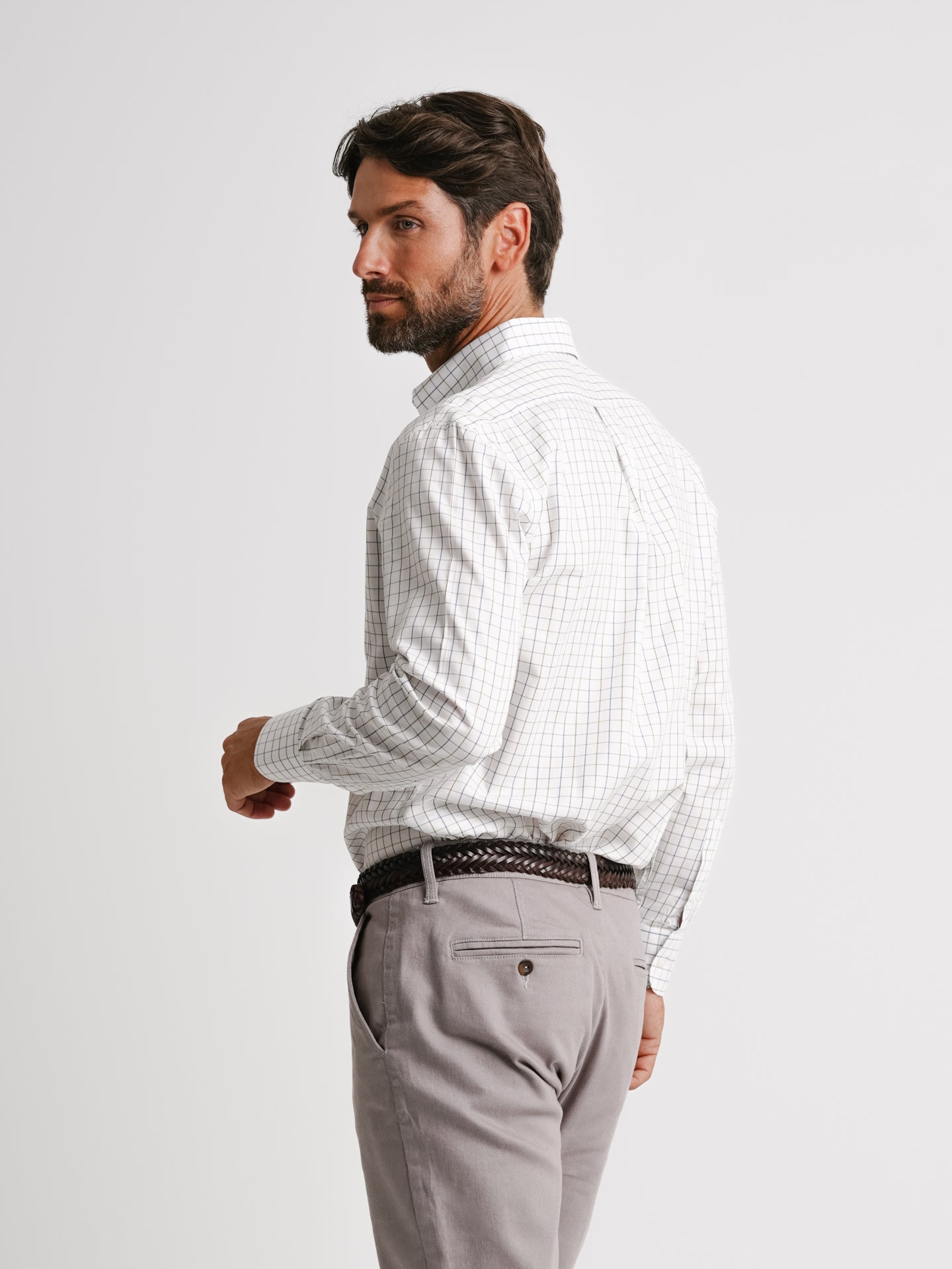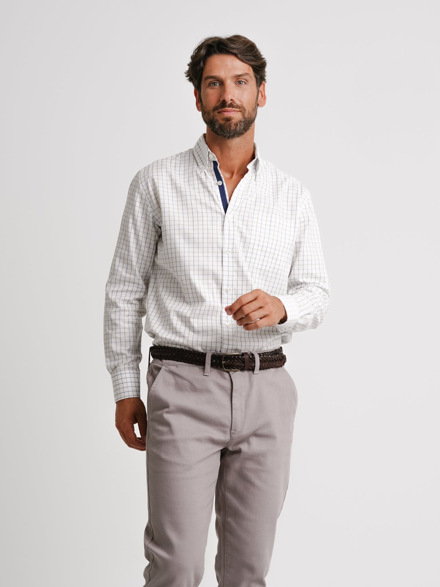 Camisa Regular Fit Twill Branca Algodão Quadrados Com bolso
