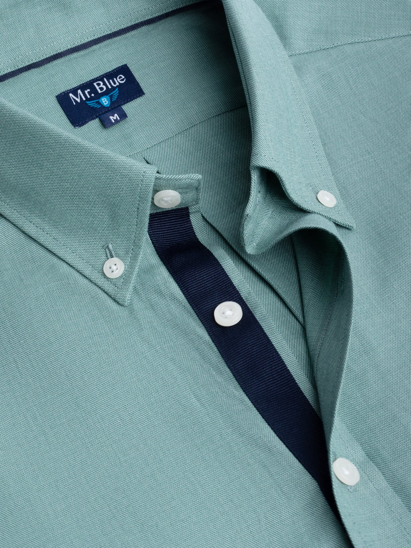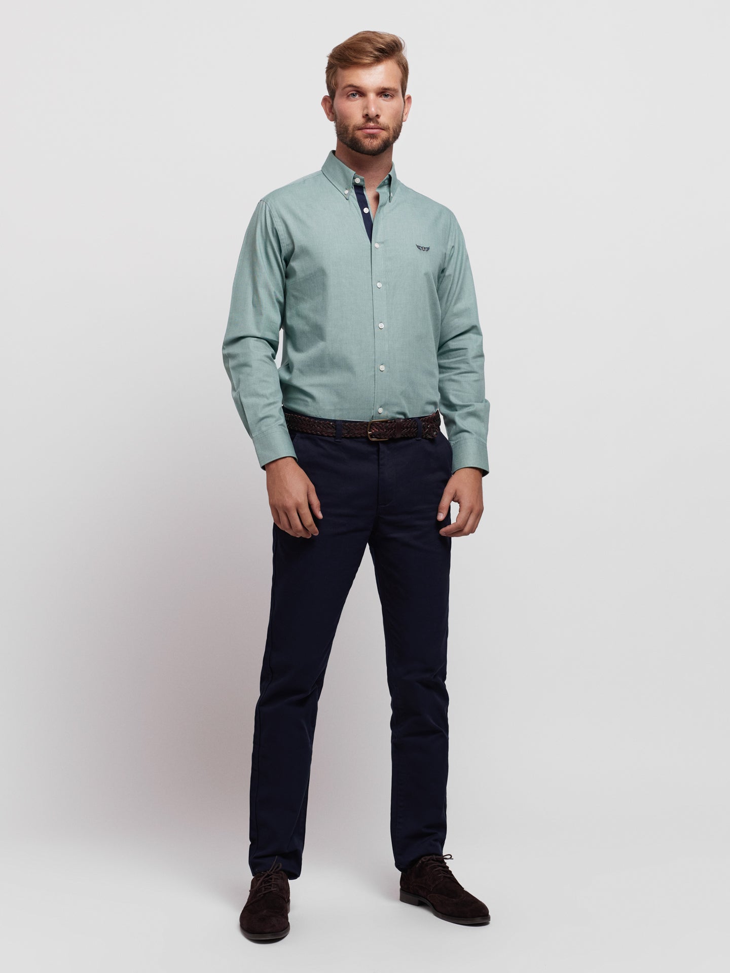 Camisa Regular Fit Oxford Verde Algodão Liso Com logo
