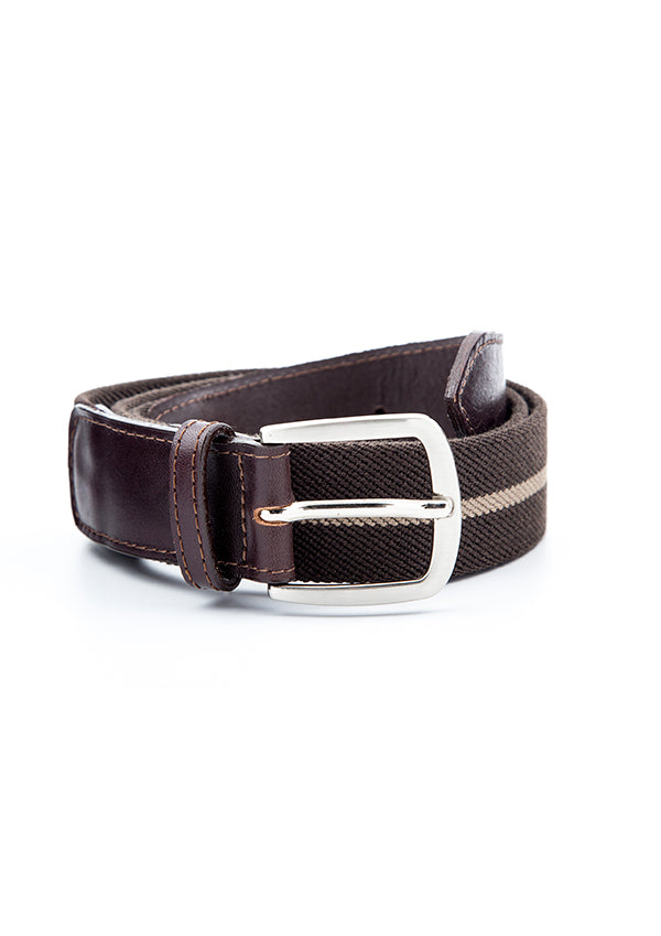 Cinto elástico com riscas finas castanho escuro beje