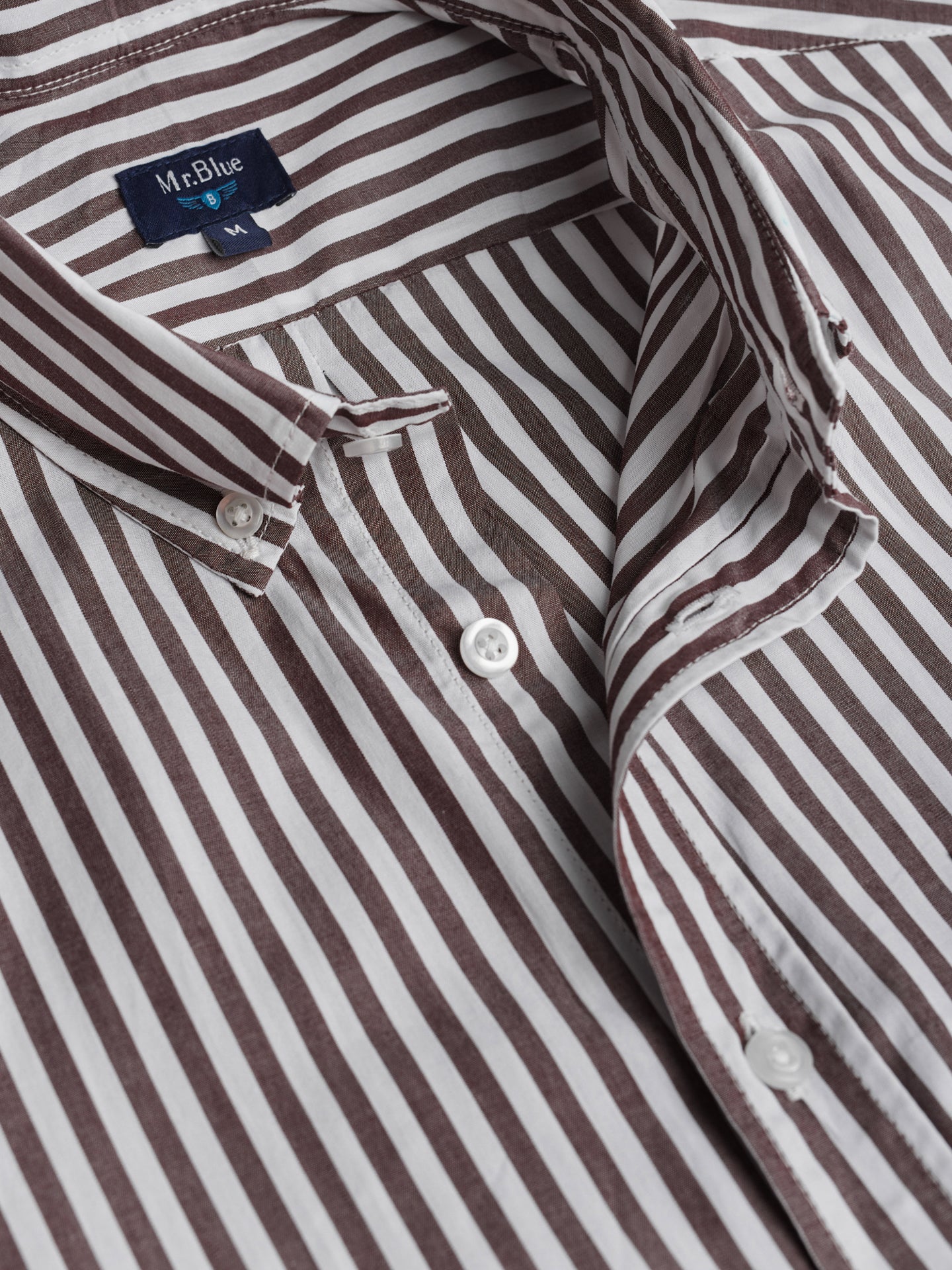 Camisa Regular Fit Popelina Castanho Manga Comprida Com bolso às Riscas