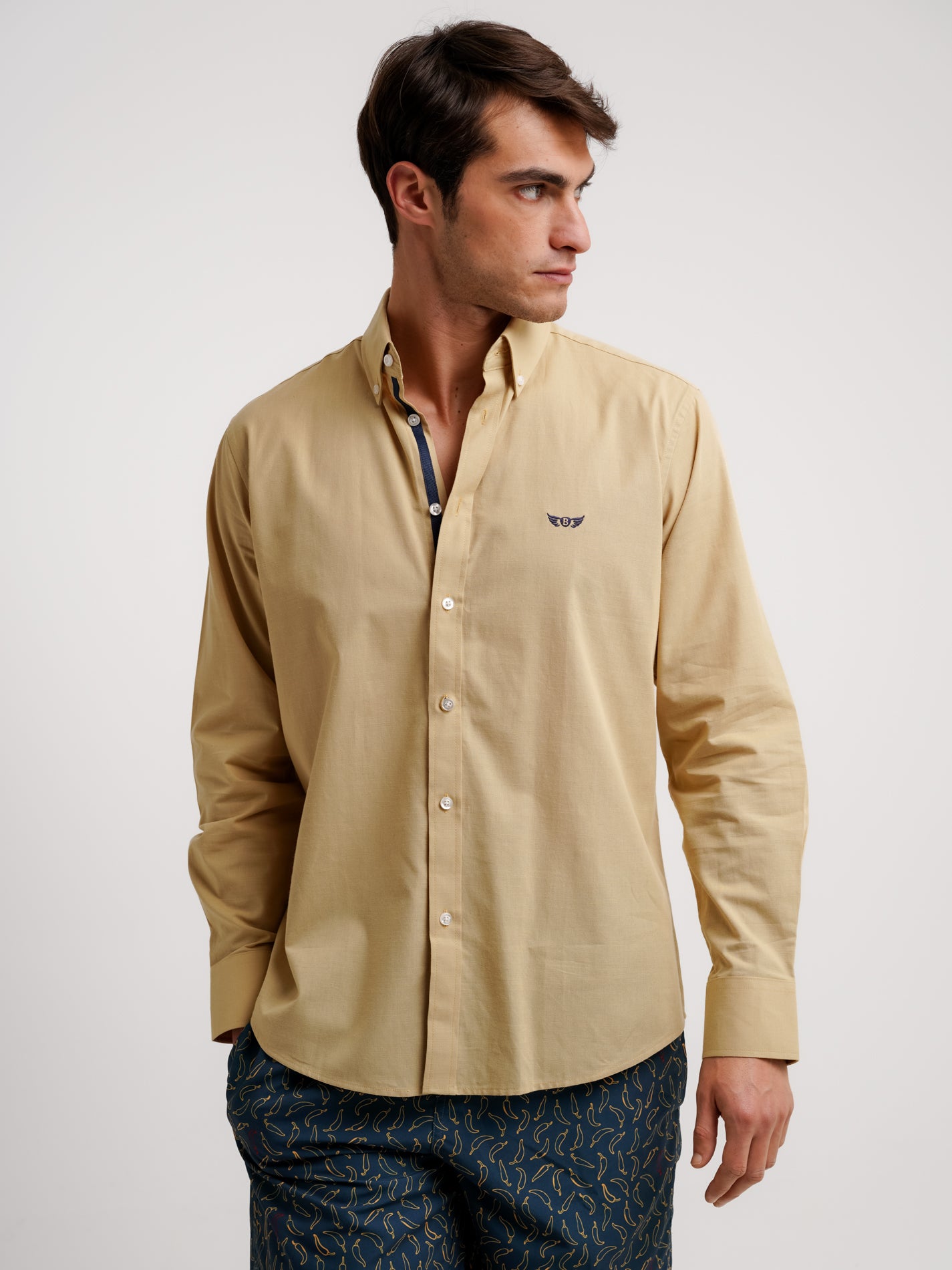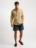 Camisa Regular Fit Oxford Amarela Algodão Lisa Com logo