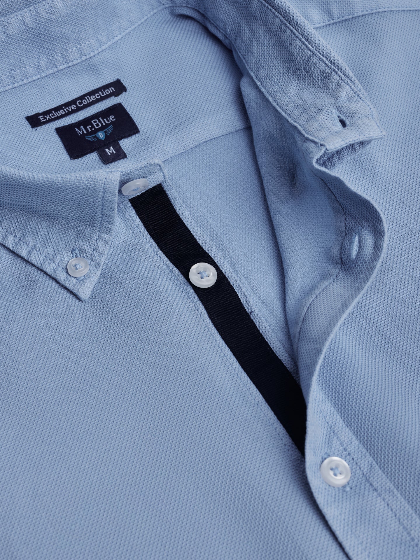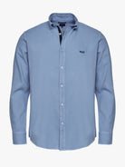 Camisa Regular Fit Estruturada Azul Algodão Liso Com logo