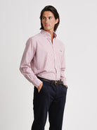 Camisa Regular Fit Oxford Vermelha Algodão Riscas Com logo
