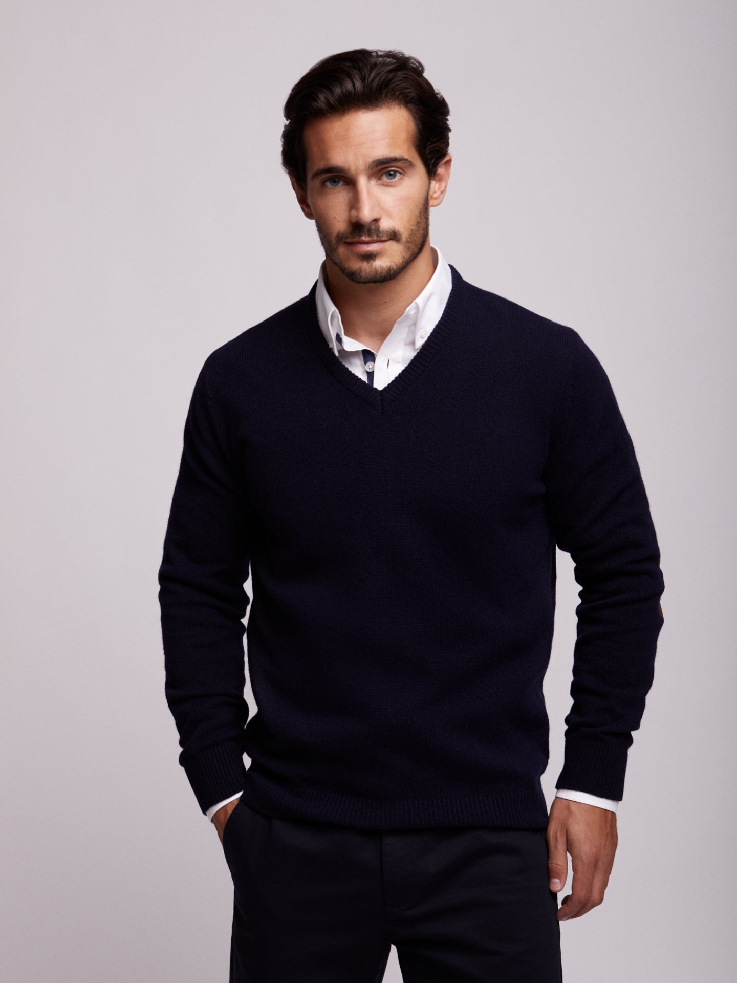 Pullover Decote em V com cotoveleira