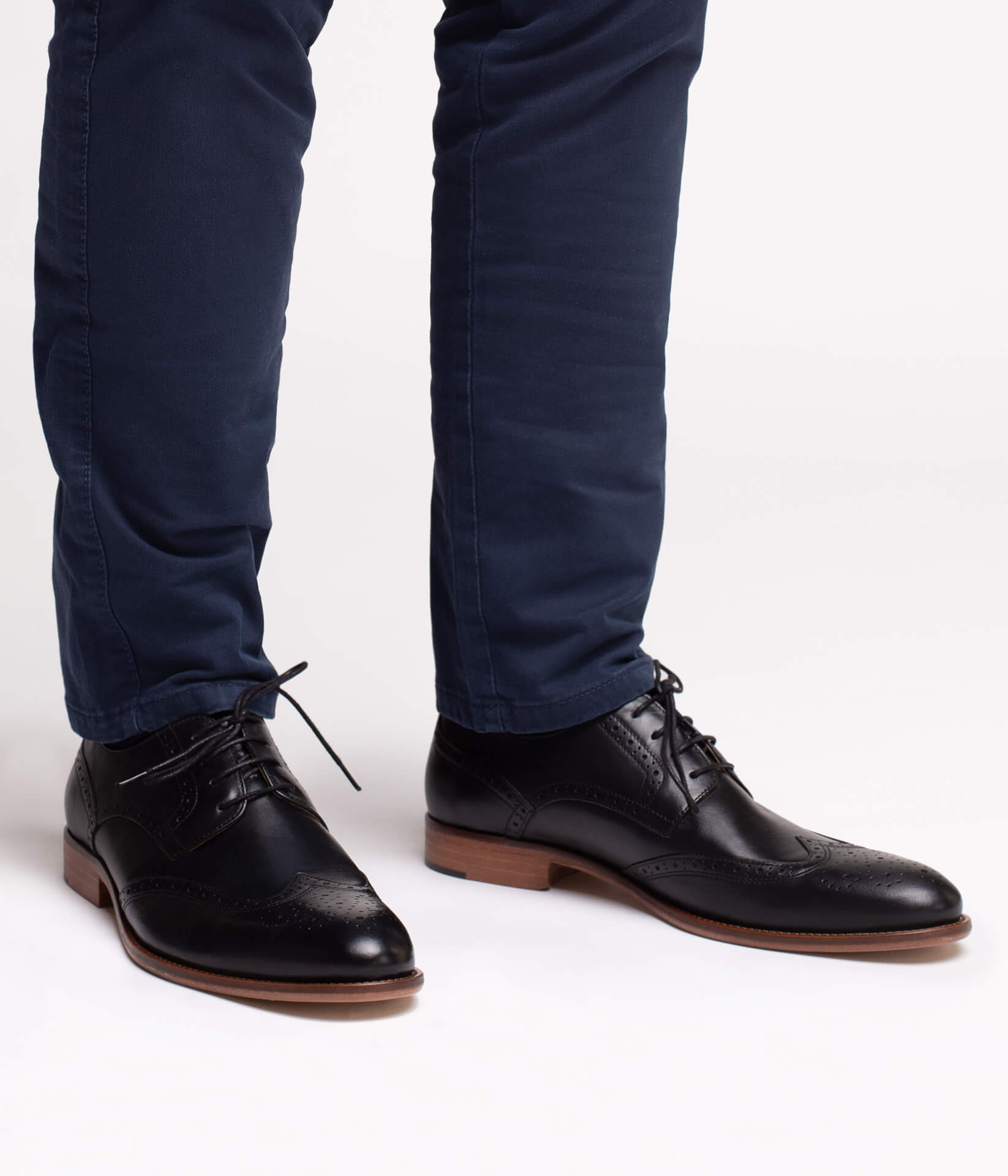 Este elegante sapato Oxford puro em couro e sola de couro, é composto por uma textura perfurada e acabamentos impressionantes que exalam elegância e modernidade.Disponível em:Couro preto e sola de couro (Preto)Couro castanho escuro e sola de couro (Cas